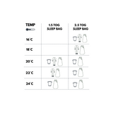 Depending on the temperature and your child's sleeping environment and preferences, we have 1.5 and 2.5 TOG to choose from