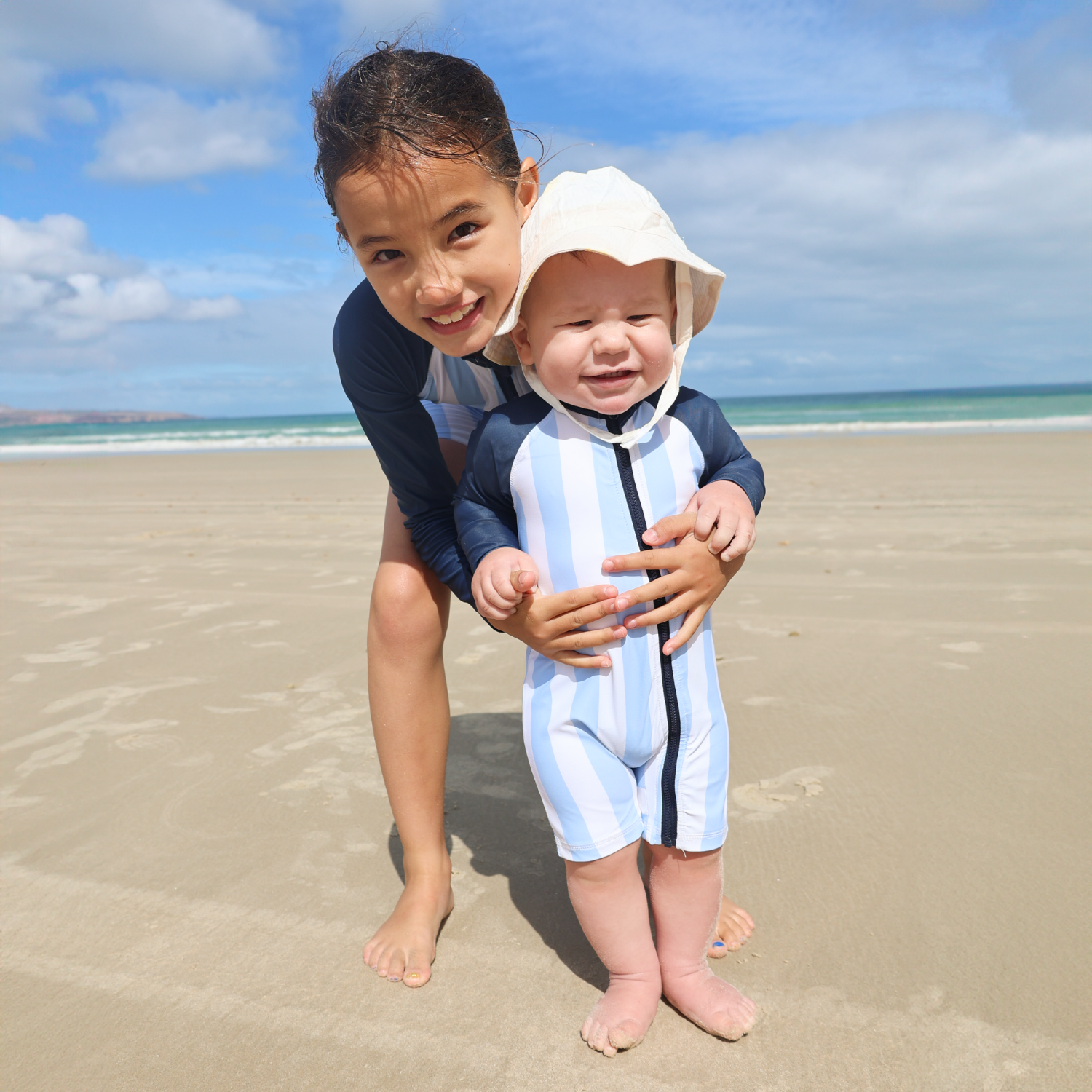 - Zip up fastening to make life with wriggly toddlers easy