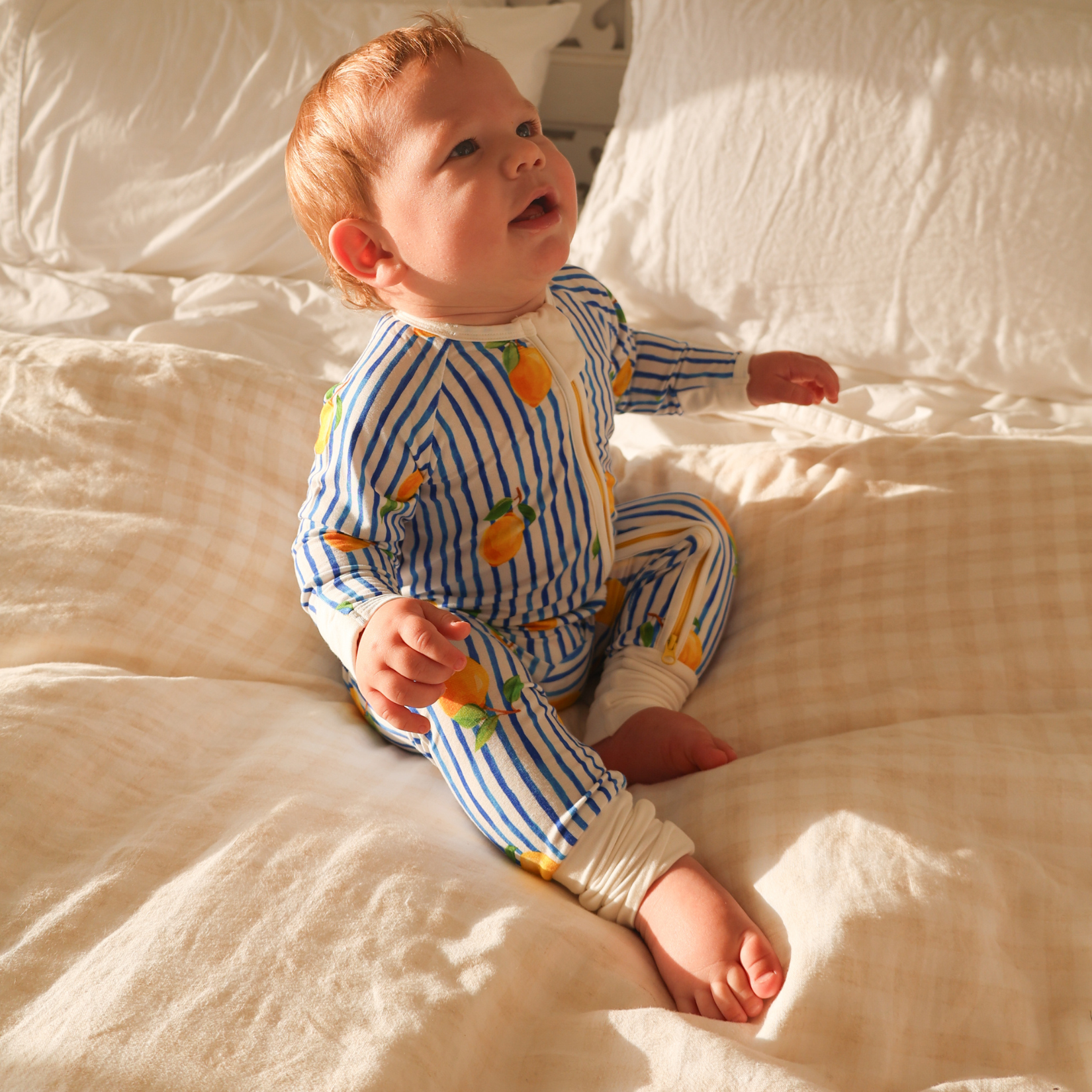 Due to the delicate nature of our luxurious Bamboo fabric, please avoid washing with items that have zippers, buttons, or hardware, as snagging may occur. For best care, wash separately with other baby items.