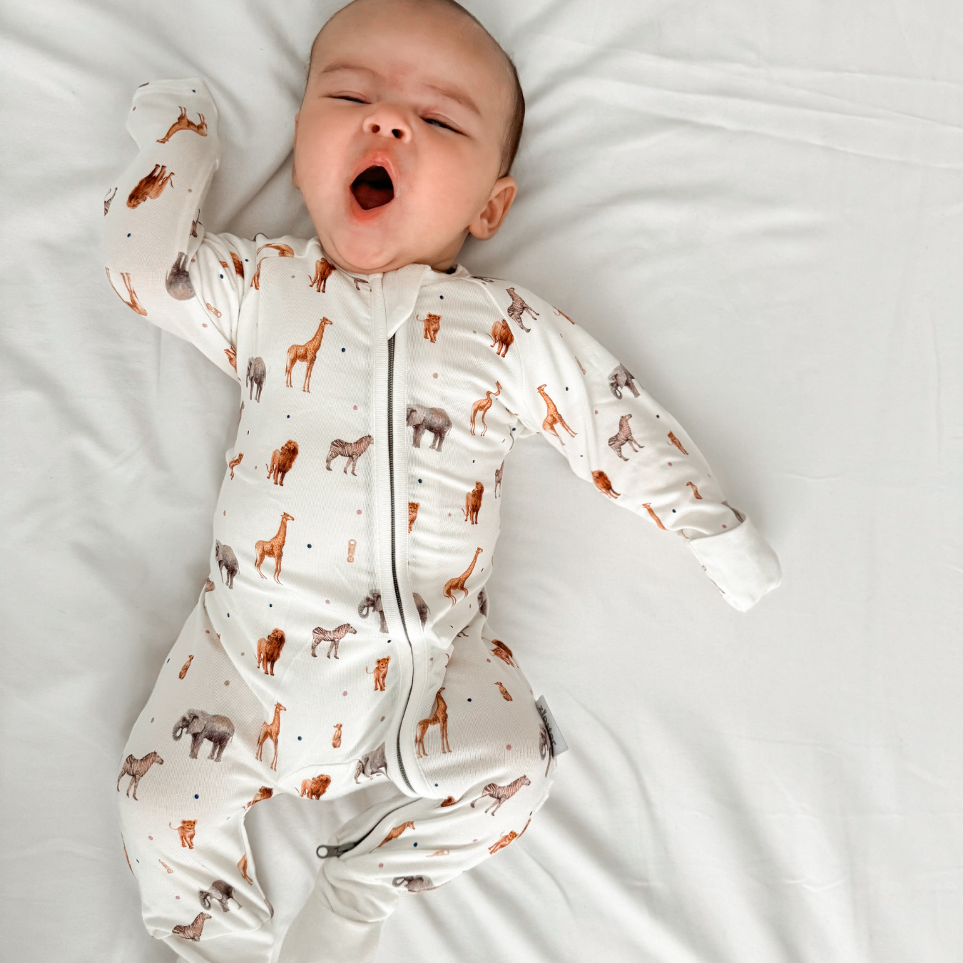 Zipsters are made with 5% elastane, so they have a lovely stretch to them and therefore last longer than other baby grows.