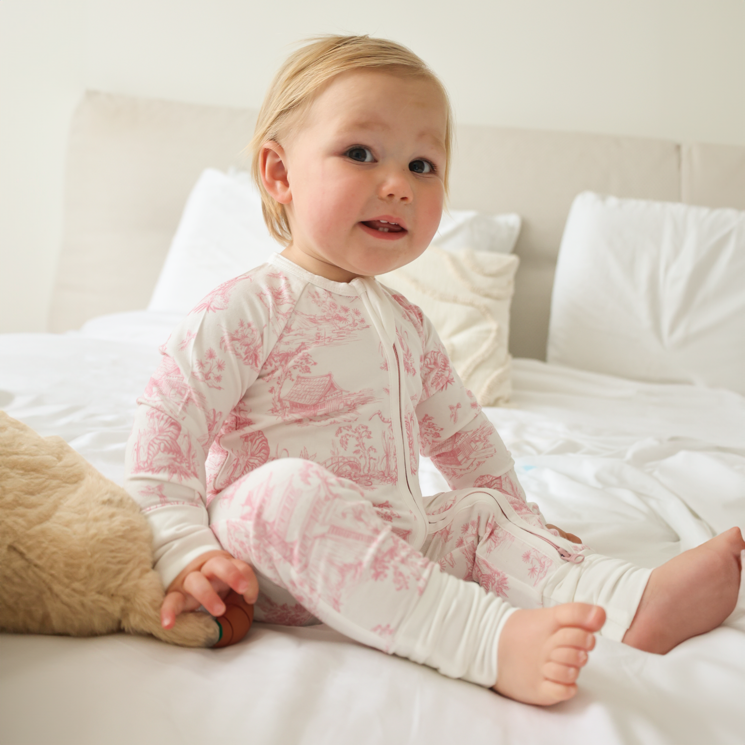 Due to the delicate nature of our luxurious Bamboo fabric, please avoid washing with items that have zippers, buttons, or hardware, as snagging may occur. For best care, wash separately with other baby items.