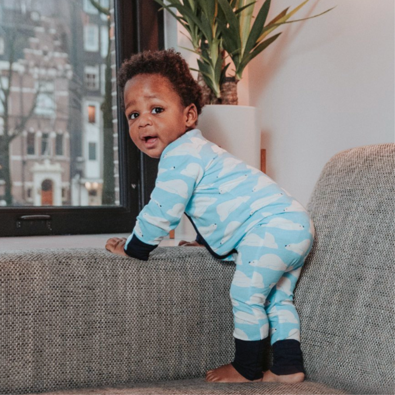 Zipsters are made with 5% elastane, so they have a lovely stretch to them and therefore last longer than other baby grows.
