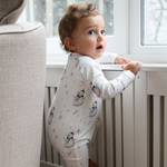 Zipsters are made with 5% elastane, so they have a lovely stretch to them and therefore last longer than other baby grows.