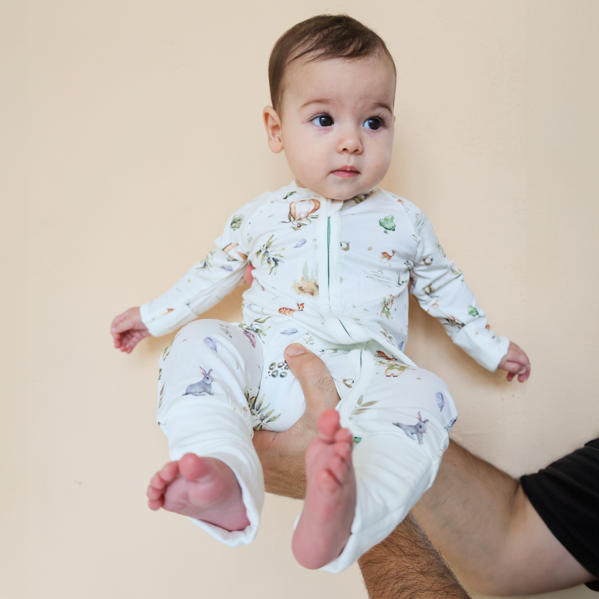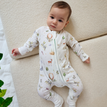 Zipsters are made with 5% elastane, so they have a lovely stretch to them and therefore last longer than other baby grows.