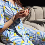 Our PJs have a lot of stretch and are a flattering fit, no matter what your size. They're also perfect if you're expecting due to the soft waistband.